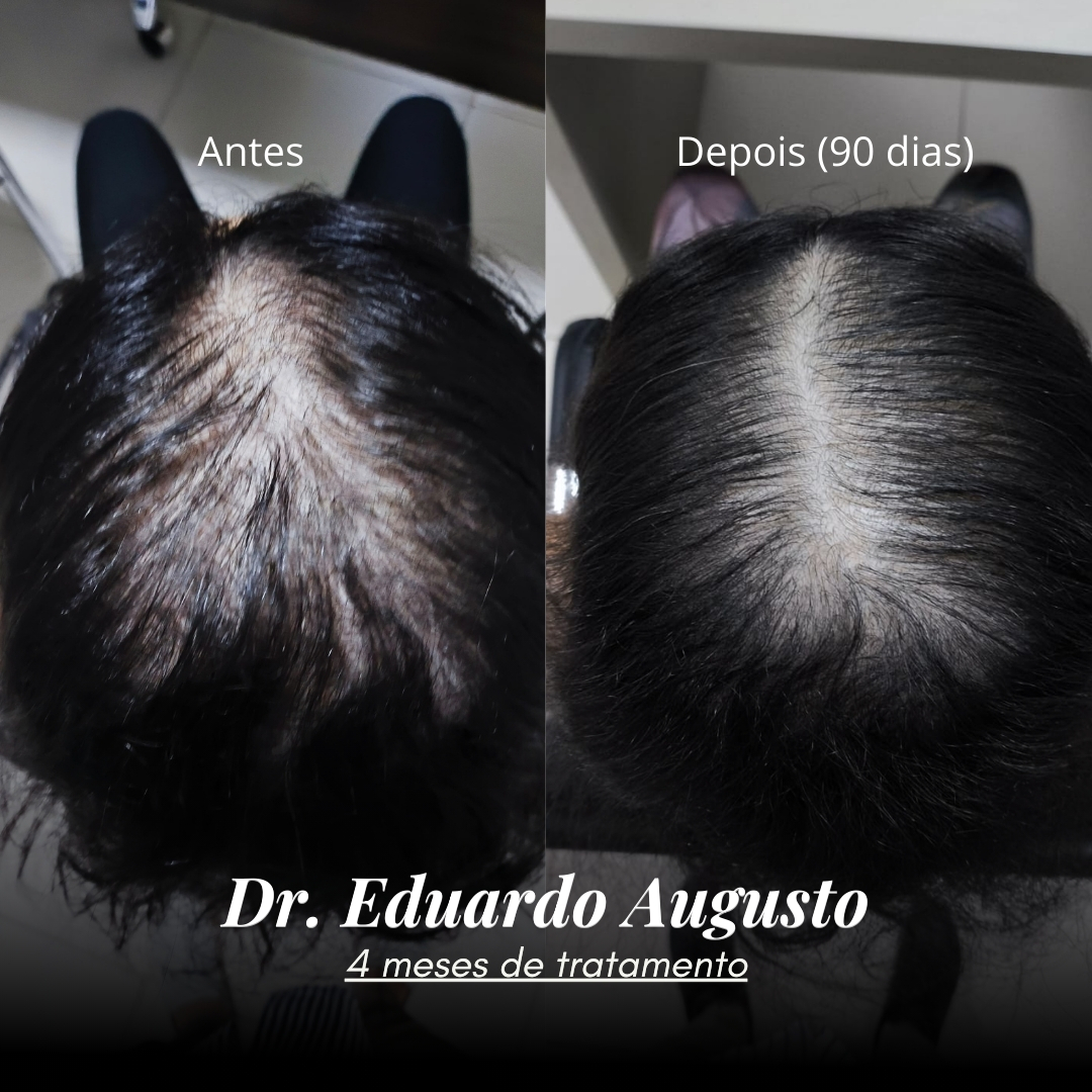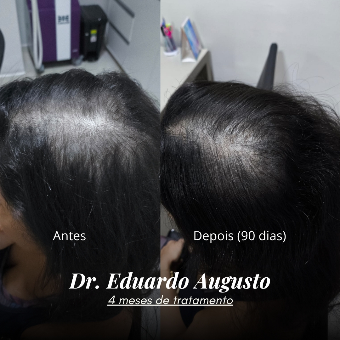 A partir do terceiro mês, o cabelo já começa a apresentar os primeiros sinais. Cabelo mais grosso, e novos fios.